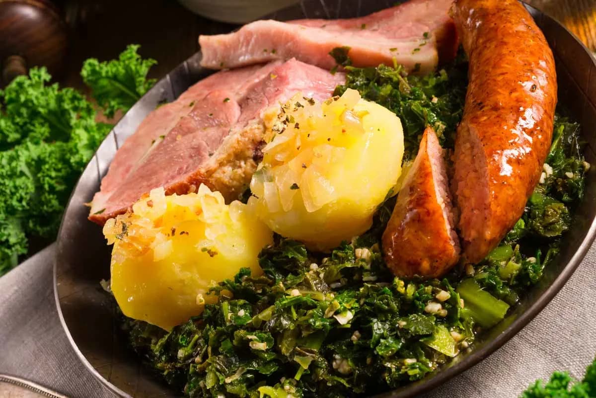 Das Bremer Nationalgericht kombiniert den gesunden Kohl mit Pinkel, einer geräucherten, groben Grützwurst. Grünkohl und Pinkel sind ein Inbegriff für herzhaftes, traditionelles deutsches Essen, das besonders in den kalten Monaten genossen wird.