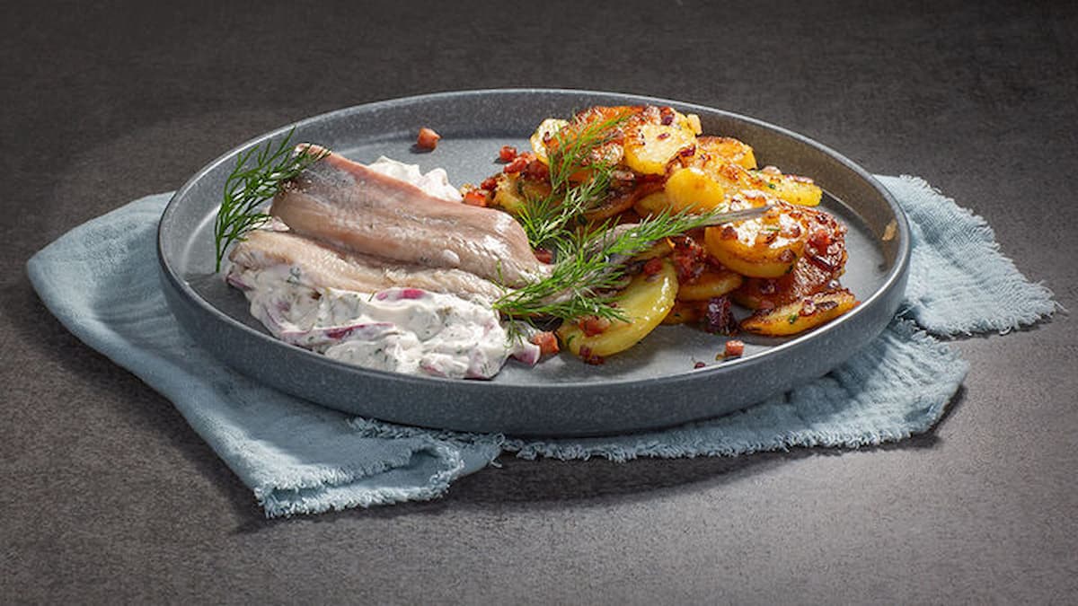 Die Norddeutschen essen Matjes am liebsten mit Pellkartoffeln und einer cremigen Sahnesoße oder als klassischen, unkomplizierten Snack im Fischbrötchen.