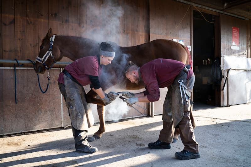 Wer den Beruf des Hufschmieds wählt, muss sich auf einen unregelmäßigen Tagesablauf einstellen. Pferdebesitzer sind oft erst in den Nachmittagsstunden oder am Wochenende im Stall, was flexible Arbeitszeiten erfordert. Zudem findet die Arbeit fast ausschließlich im Freien oder in ungeheizten Stallungen statt. Wetterfestigkeit ist daher ein Muss.
