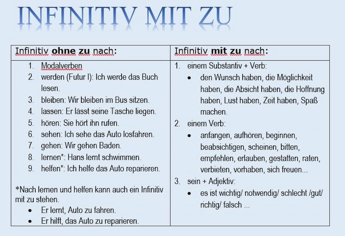 Die deutsche Grammatik gibt Ihnen keinen Grund zu verzweifeln, den Infinitiv mit zu zu meistern!