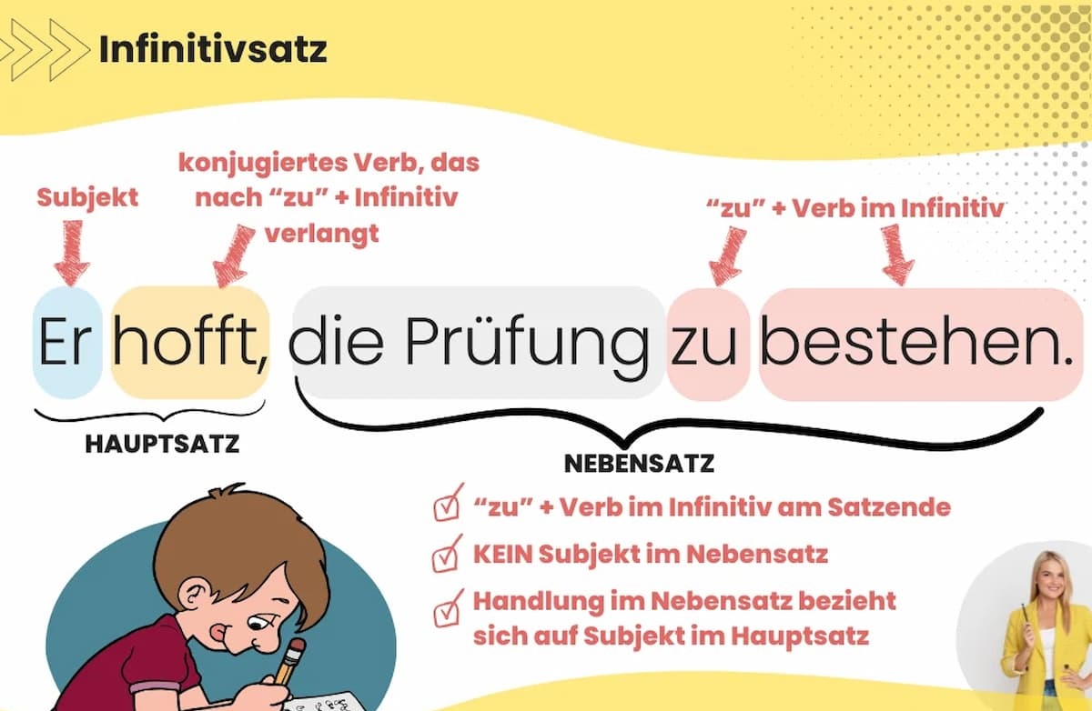 Infinitivsätze sind ein faszinierendes und wichtiges Element der deutschen Grammatik. Sie bieten eine elegante Möglichkeit, Sätze zu verkürzen, zu verallgemeinern und komplexe Ideen prägnant auszudrücken. Wenn Sie Ihre Deutschkenntnisse auf die nächste Stufe heben möchten, ist das Verständnis und die korrekte Anwendung von Infinitivsätzen unerlässlich. Dieser Artikel beleuchtet die Struktur, Verwendung und die spezifischen Wörter und Wendungen, nach denen Infinitivsätze im Deutschen typischerweise stehen.
