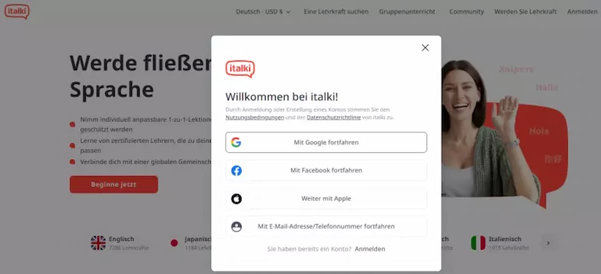 Die Preise bei italki gehören zu den flexibelsten auf dem Markt. Unterrichtsstunden starten häufig bei 10–25 Euro, je nach Sprache, Lehrerfahrung und Herkunft der Lehrkraft.