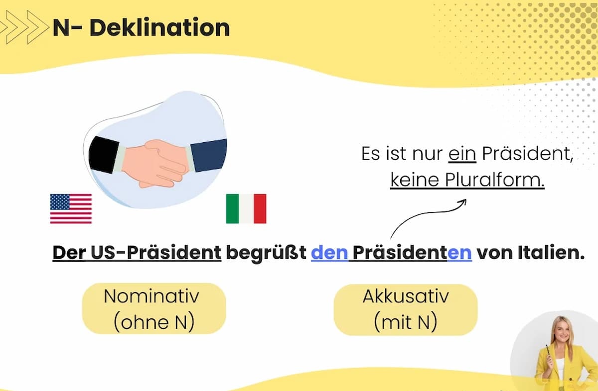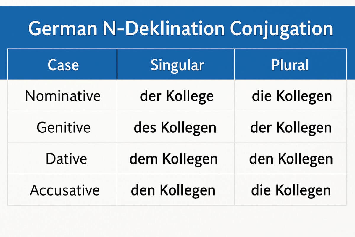 Die n-Deklination ist ein festes und logisches System im Rahmen der deutschen Grammatik. Sie betrifft eine klar definierte Gruppe maskuliner Nomen, zumeist Lebewesen und Nomen auf bestimmte Suffixe, die in den obliquen Fällen Singular (Genitiv, Dativ, Akkusativ) die Endung -n oder -en erhalten.