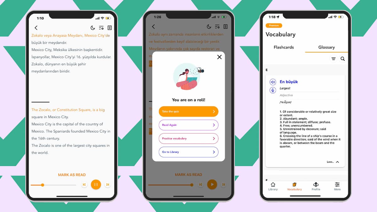 Die meisten Podcasts werden von zwei Personen präsentiert: einem Muttersprachler und einem Lernenden. Das Lerntempo ist angemessen, aber zügig, und Sie erhalten viele gute Erklärungen. Die kostenpflichtigen Abo-Angebote reichen von $4 bis $23 pro Monat. Jeder Podcast wird durch schriftliches Material wie eine Mitschrift und Unterrichtsnotizen ergänzt.