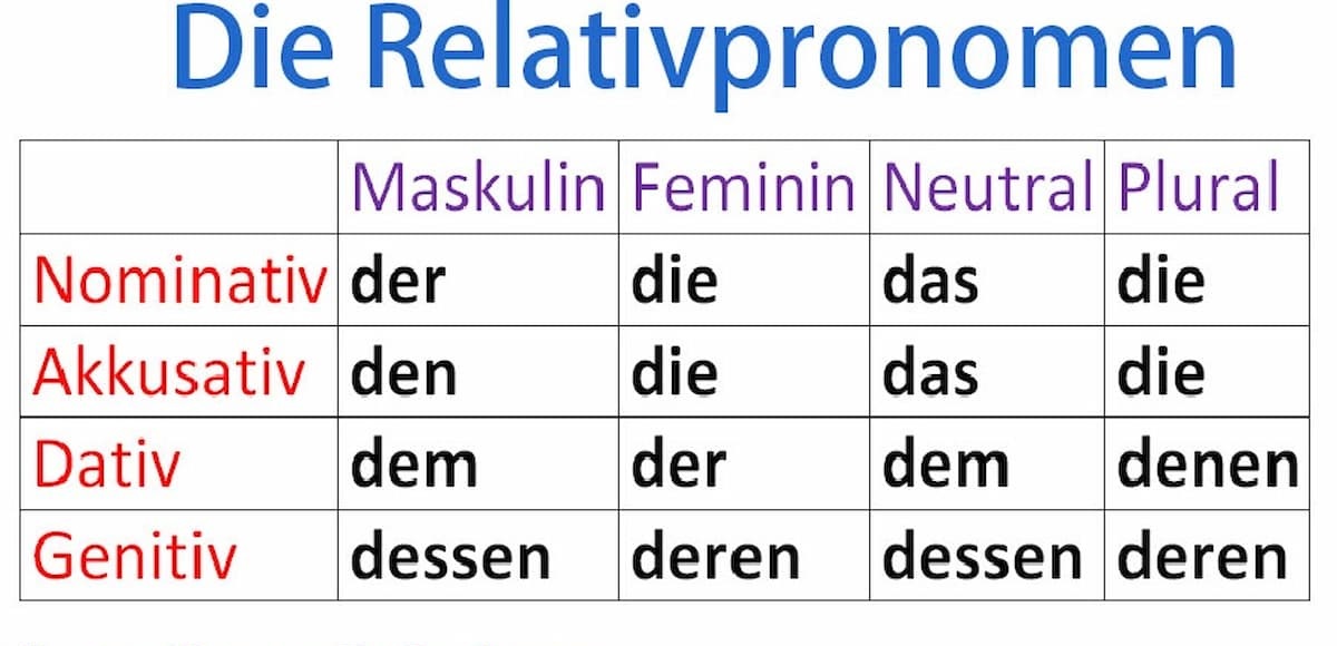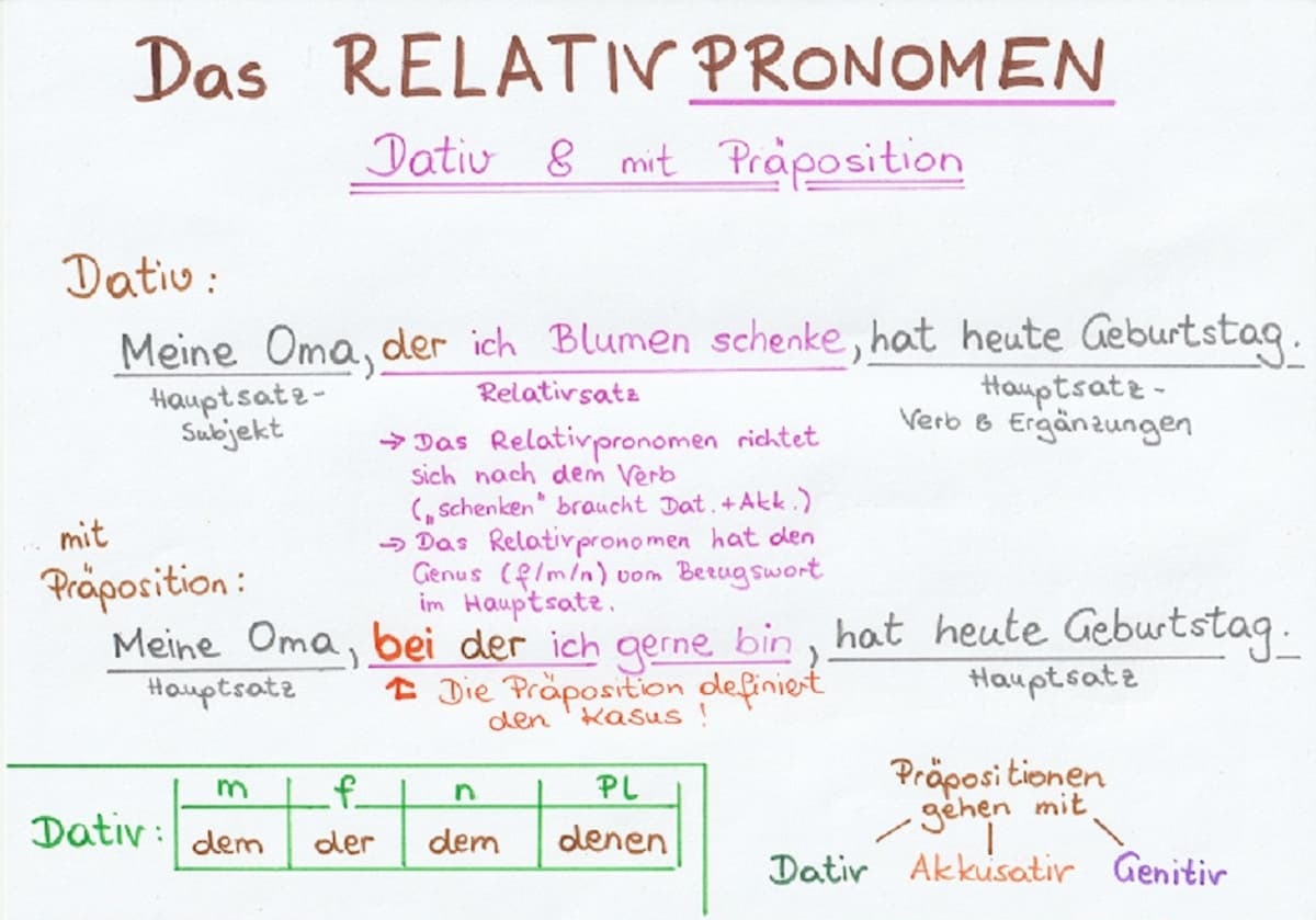 Übersicht: Deutsche Relativpronomen in allen Fällen