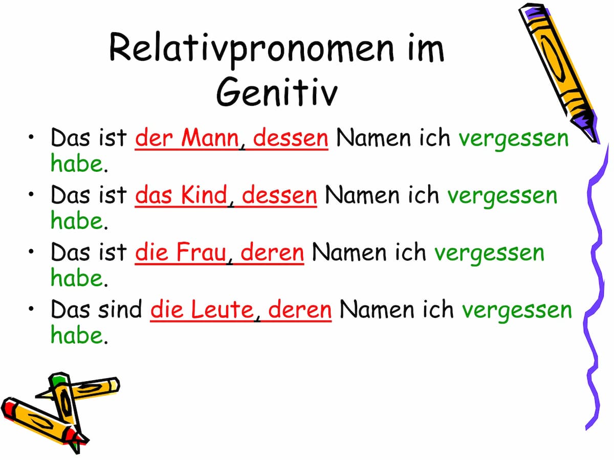 Die Form des Relativpronomens hängt von Genus, Numerus und Fall des Bezugswortes ab. In der Praxis hilft es oft, erst einen einfachen Satz zu bilden und dann das passende Relativpronomen zu wählen. Mit etwas Übung erkennst du automatisch, wie der Relativsatz aufgebaut sein muss.
