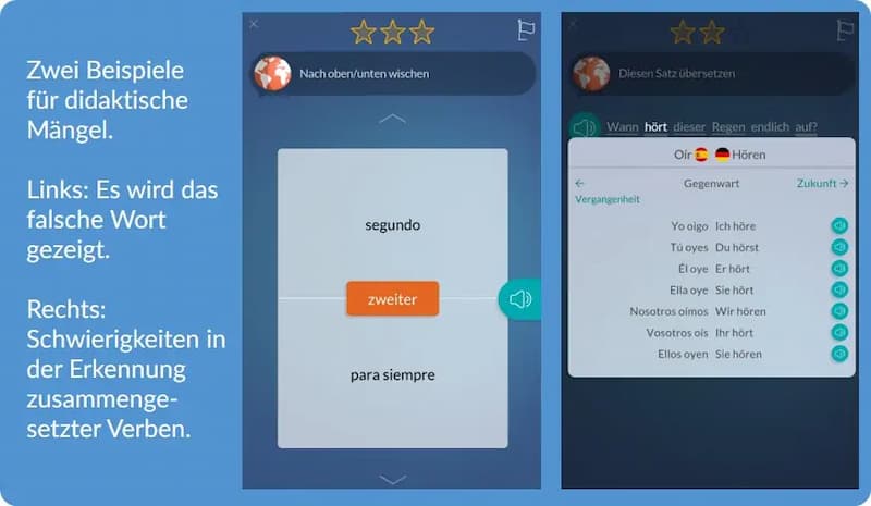 • Kaum explizite Grammatiklektionen, was für manche Lerner schwierig ist.