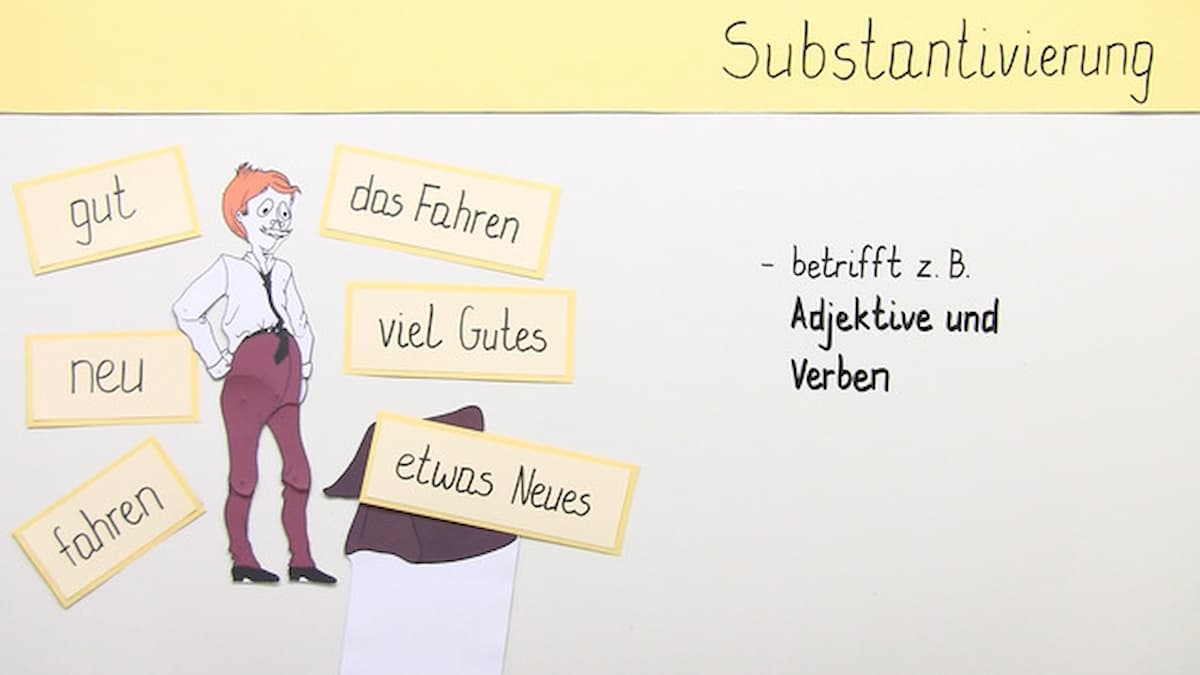 Ein substantiviertes Adjektiv ist ein Adjektiv oder Partizip, das in einem Satz die Funktion eines Nomens übernimmt. Es wird großgeschrieben (das Gute), folgt aber den Adjektiv-Deklinationsregeln (schwache, gemischte oder starke Deklination).