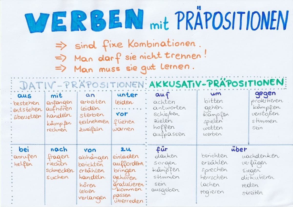 Manche möchten wissen, wie man sich die vielen Kombinationen mit Präpositionen merkt. Die einfachste Methode ist, die Verben immer gemeinsam mit ihrer Präposition zu lernen. Wenn du dir denken an, sich freuen auf oder sich interessieren für als feste Strukturen einprägst, wird der richtige Fall automatisch sofort klar.